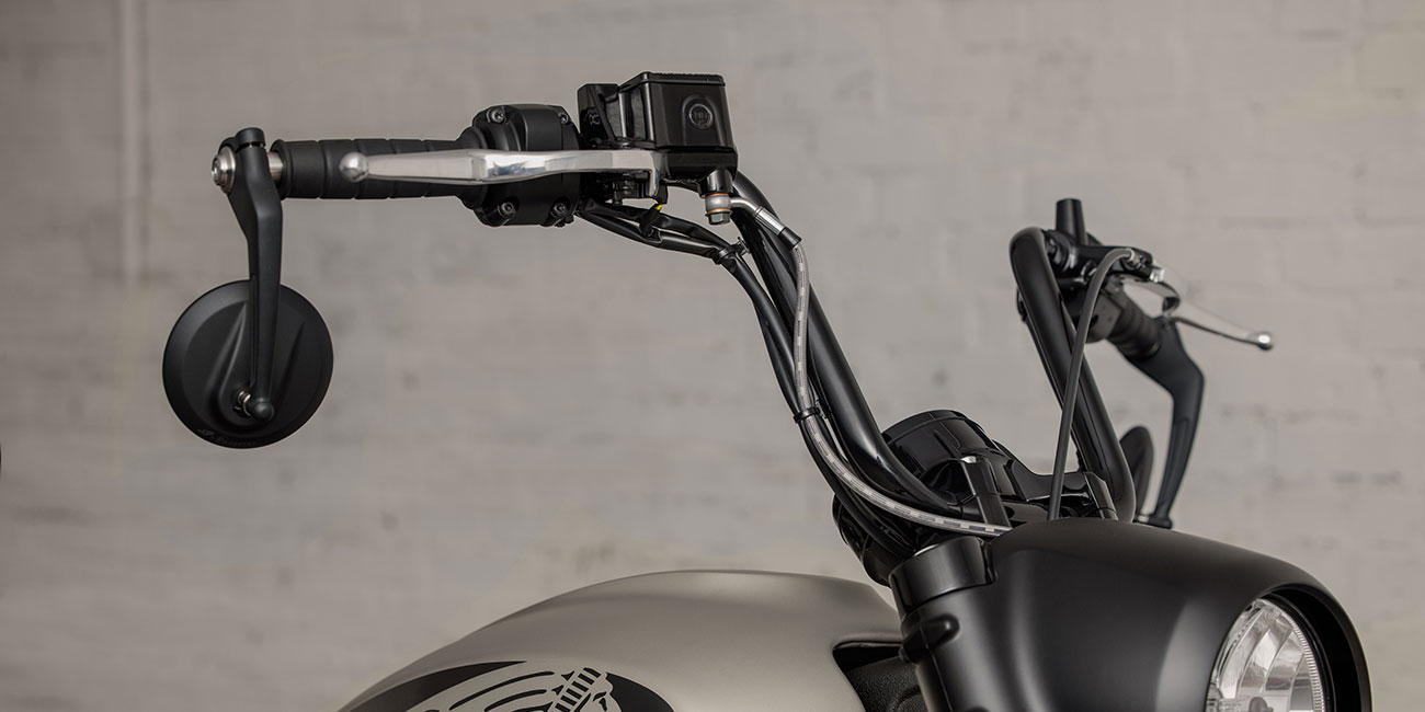 Mini-guidon « ape hanger » pour une conduite plus détendue.