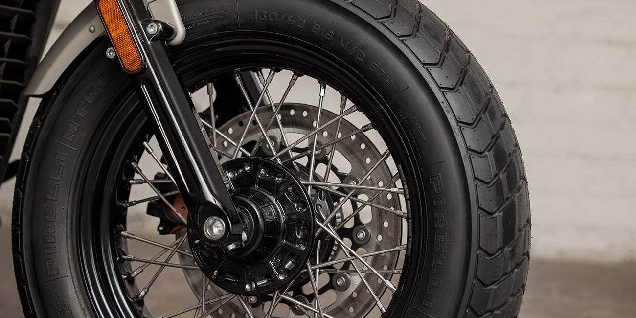 La Scout Bobber Twenty est équipée de jantes à rayons pour un style rétro accompagné d'une puissance hyper coupleuse.